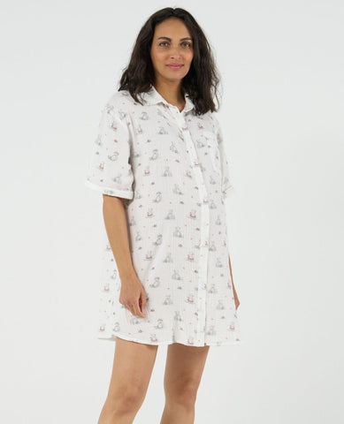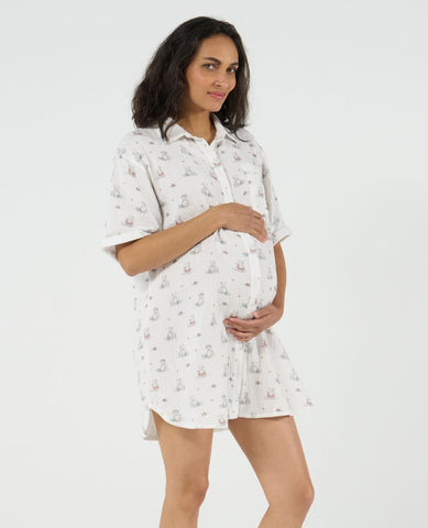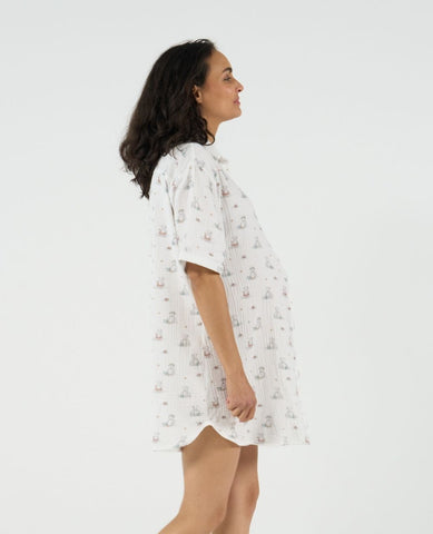Discover the softness of our Elinor nightdress made from 100% organic cotton gauze, designed for maternity and nursing and finished with an adorable small bear print.