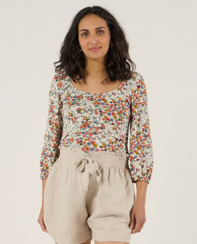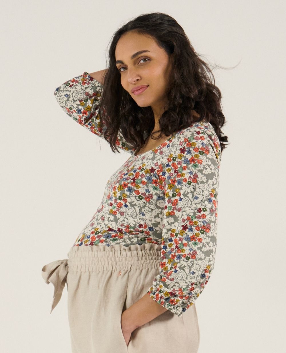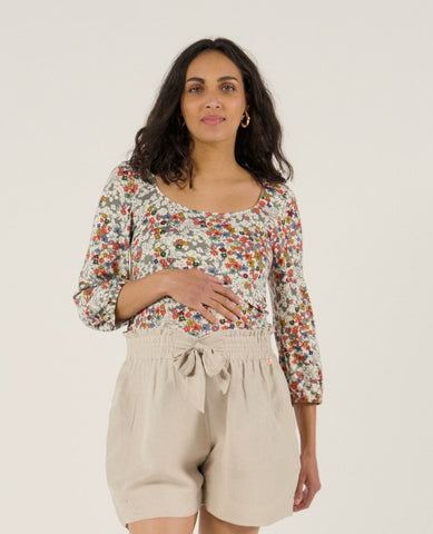 The Liberty Multicolor Maternity & Nursing Top blends everyday comfort with feminine charm. Crafted from soft EcoVero™ viscose jersey, it features romantic puff sleeves with delicate scalloped trim for a refined touch.