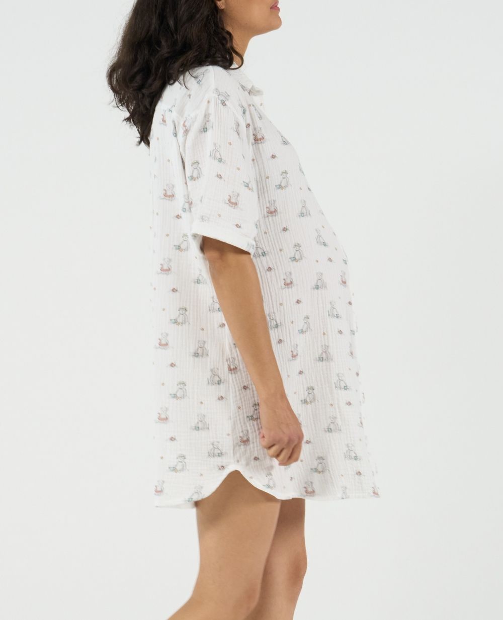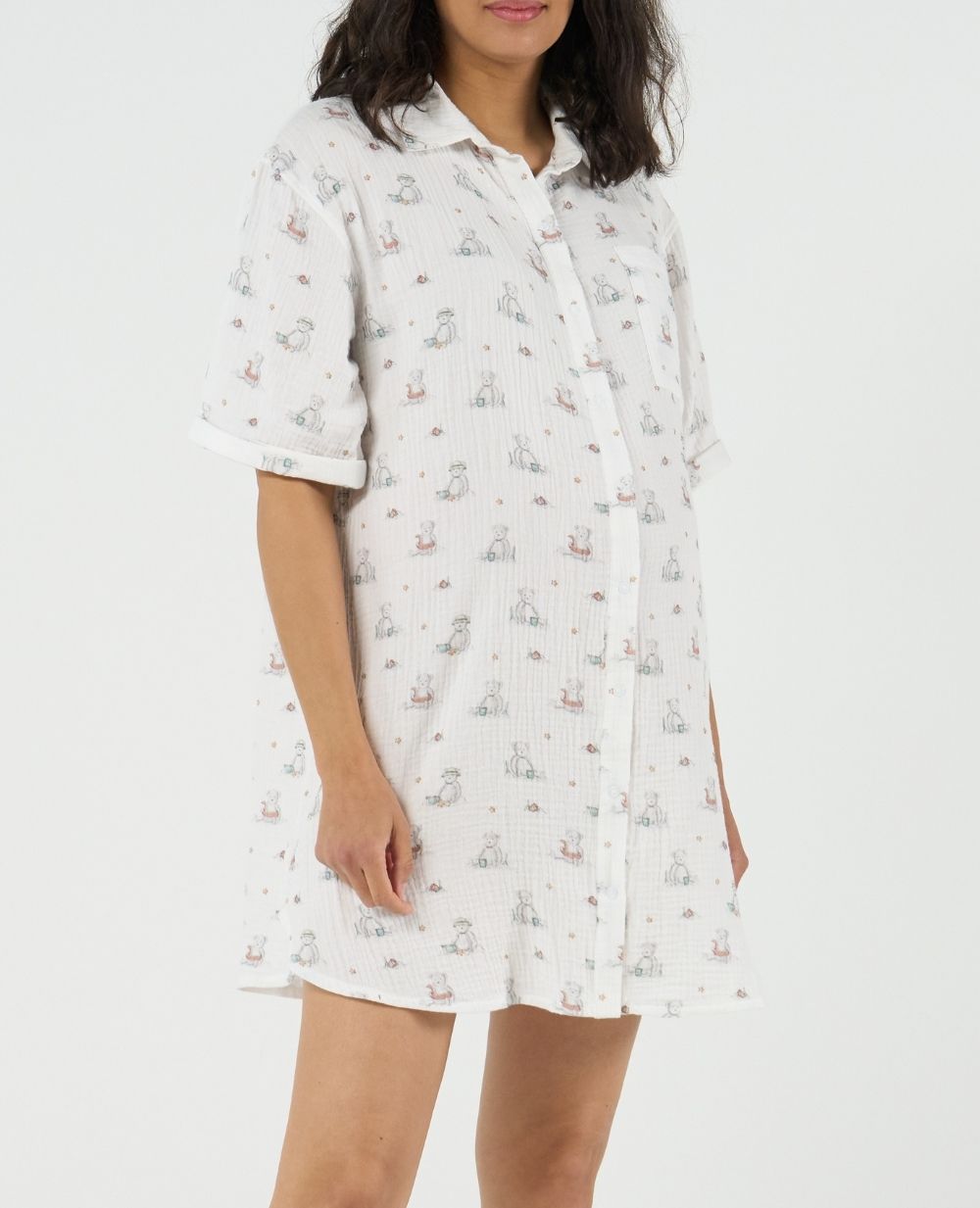 Discover the softness of our Elinor nightdress made from 100% organic cotton gauze, designed for maternity and nursing and finished with an adorable small bear print.