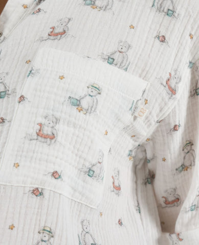 Elinor is the matchy-matchy line that creates a special bond between mum and baby. Made from organic cotton gauze, this collection offers true comfort for the whole family. The small bear print adds a touch of softness and poetry to your maternity and nursing moments, while perfectly coordinating with the baby pieces in the range.