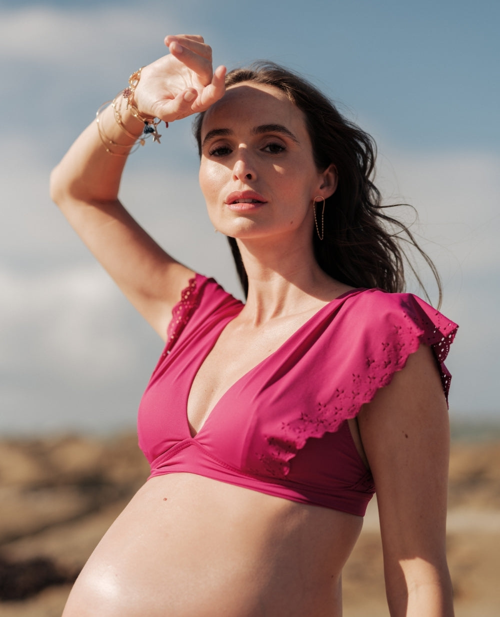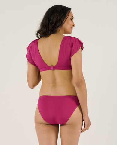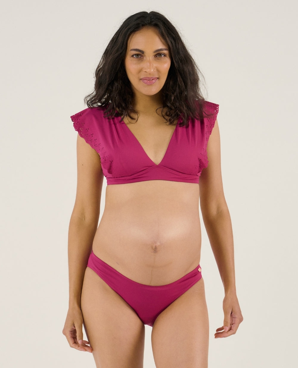 The Bloom Fuchsia maternity bikini combines style and comfort with its fixed cups and removable strap for a natural shape.